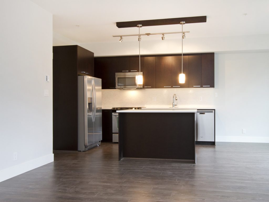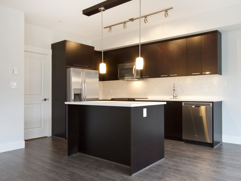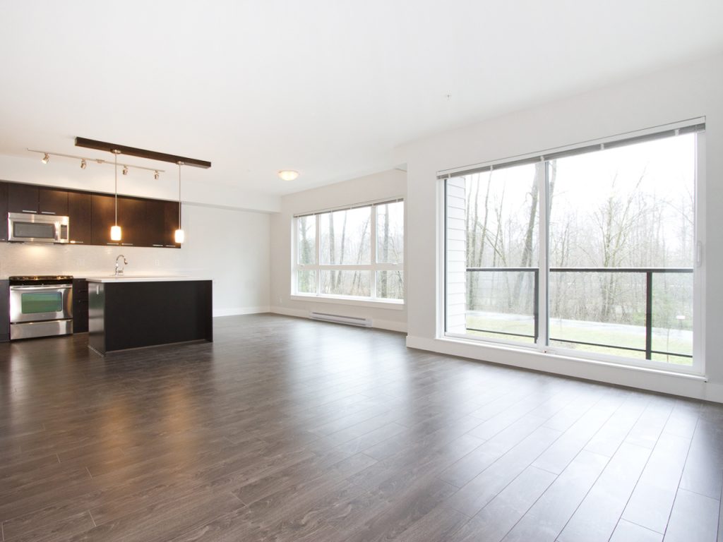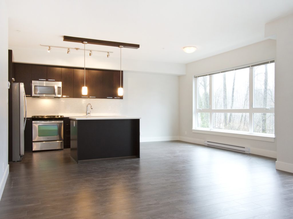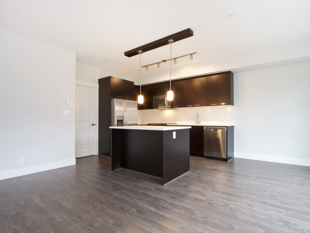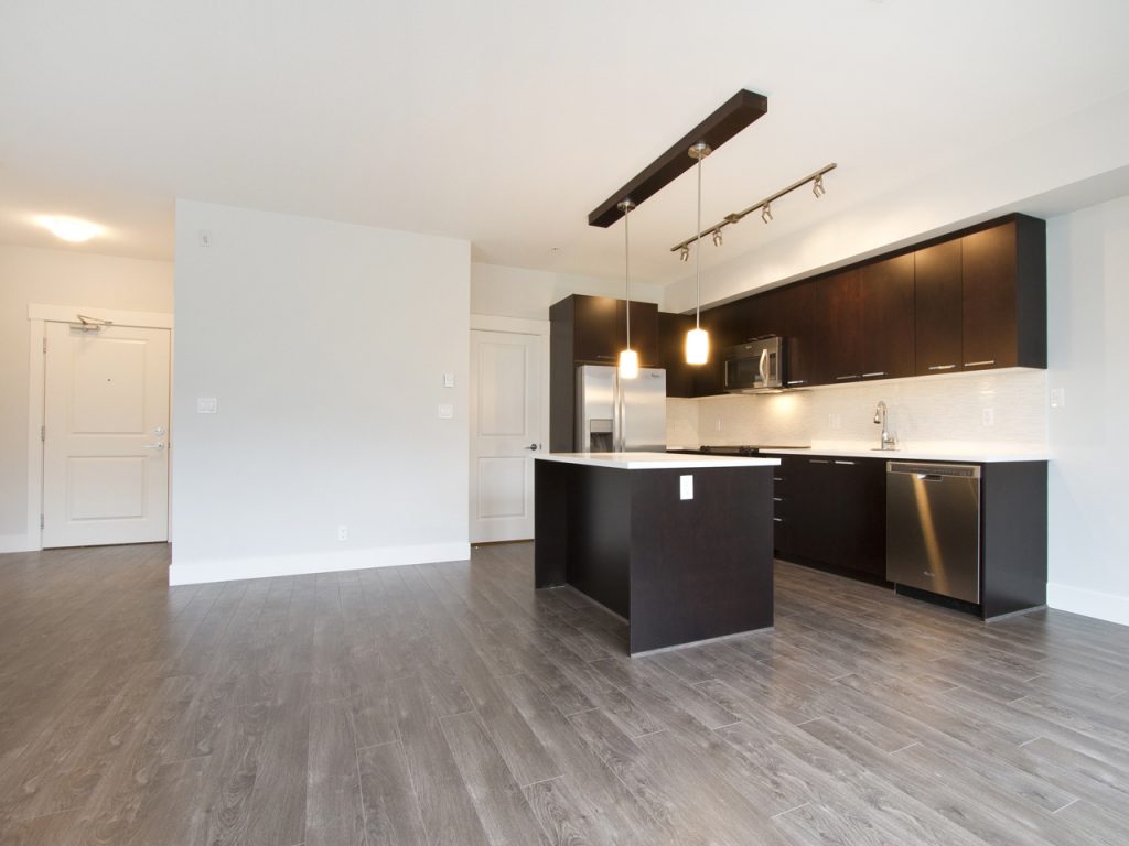 TRENDY NEW AQUILA. Plan (A): LARGE open concept 2 BEDRMS + 2 BATHS + DEN/office & an insuite storage. Ready to move in! GORGEOUS OUTLOOK of the park & the Traboulay Poco Trail. No expenses spared! O/H ceilings, contemporary design, gourmet kitchen with a large island, composite stone counters, modern cabinets, high end S/S appliances & fixtures, rich laminate wood floors & insuite laundry. Large master bdrm with ensuite bath & WALK IN closet. A bright space with oversized windows & a balcony. Parking & storage included, complete with a 2-5-10 home warranty. Close to schools, transit, shops & park. Don’t miss this home! PARKING #5, STORAGE #14.