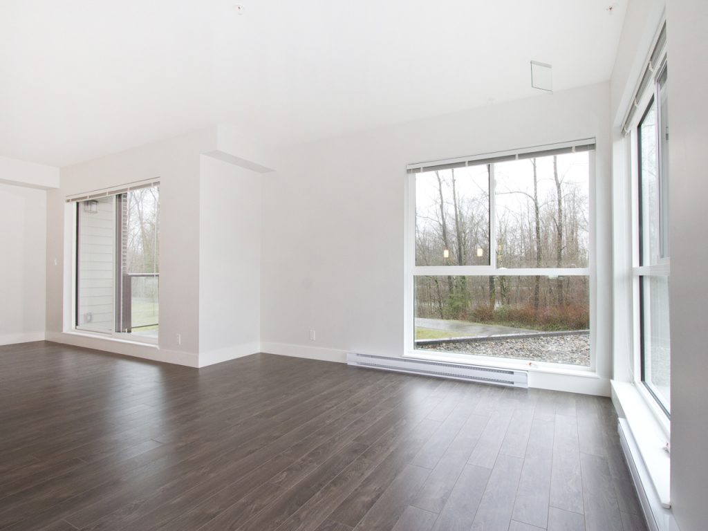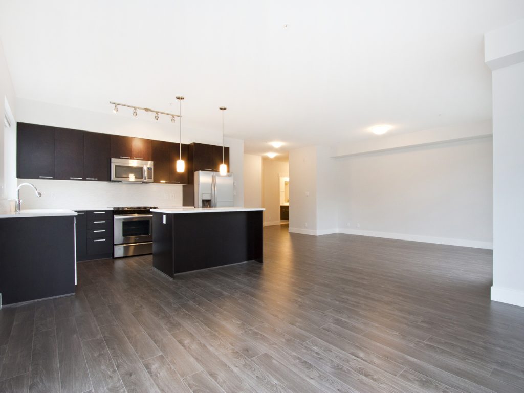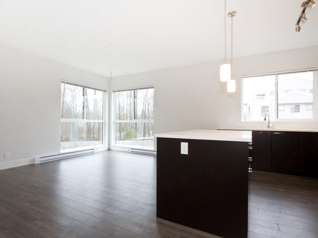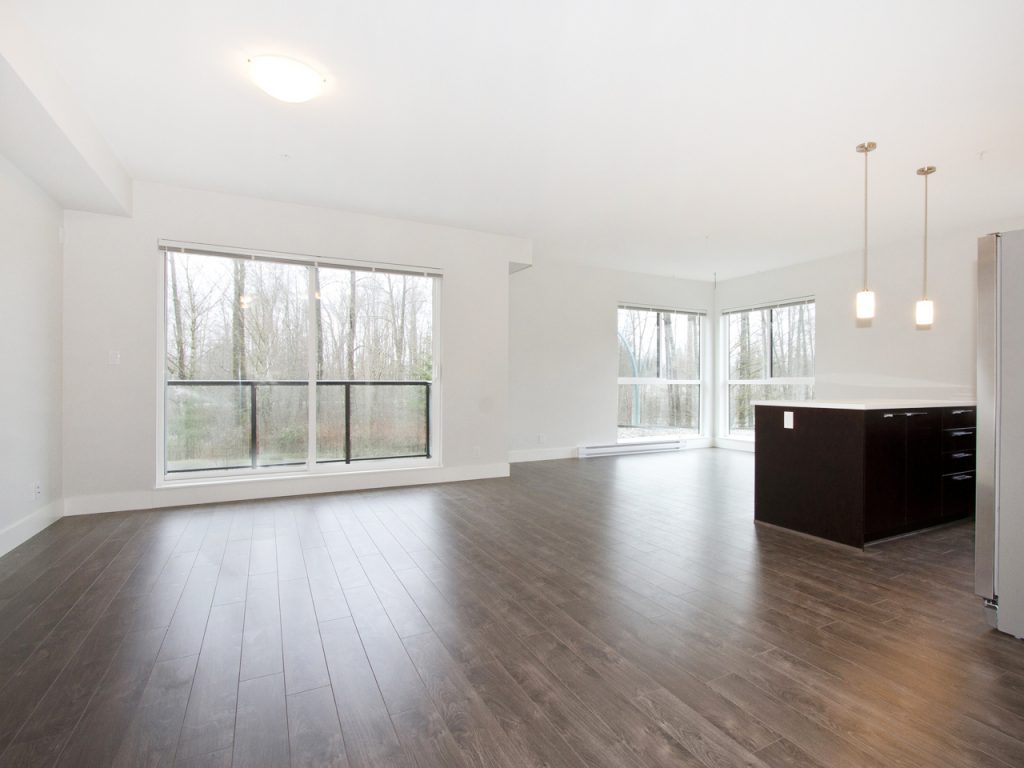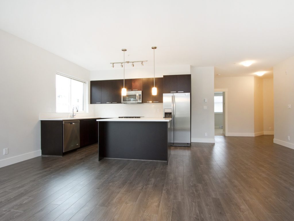 TRENDY NEW AQUILA. Plan (B): TWO BALCONIES, LARGE CORNER open concept 2 BEDRMS + 2 BATHS + DEN or office. Ready to move in! GORGEOUS OUTLOOK of the park & the Traboulay Poco Trail. No expenses spared: O/H ceilings, contemporary design, gourmet kitchen with a large kitch island, composite stone counters, modern cabinets, high end S/S appliances, modern fixtures, rich laminate wood floors & insuite laundry. Large master bdrm with ensuite bath & WALK-IN closet. A bright space with oversized windows & a private balcony. Parking & storage included, complete with a 2-5-10 home warranty. Close to schools, transit, shops & park. Don’t miss this home! PARKING #11, STORAGE 13.