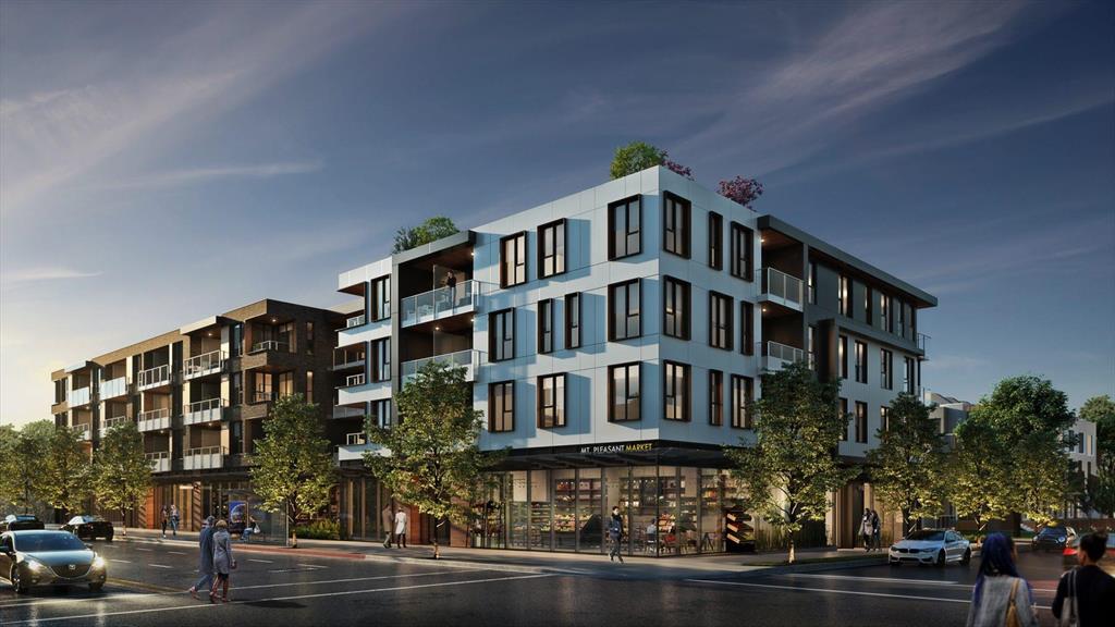 VERY UNIQUE: The only 'ONE BEDROOM' plan in the building (NOT a Studio)! Assignment Sale at ‘The Saint George’ in bustling Mount Pleasant! CORNER One bedroom w/the full custom European cabinetry & millwork package, making it a breeze to furnish. Extra Pantries & Closets, built-in media console, tailored entry closet w/bench, all in a modern Light Oak wood colour. Bosch panel concealed appliances, 4-burner gas cooktop, convenient Heating & Cooling, over-height 9-foot ceilings, wide plank flooring and a generous balcony. Stunning mountain views from the Rooftop Amenities: in & out kitchens, rooftop terrace, firepit/ BBQ, community garden and a children's play area. Steps to the New Main Street Skytrain. 2-5-10 Warranty. Storage Locker. HURRY - Completion Summer 2025.