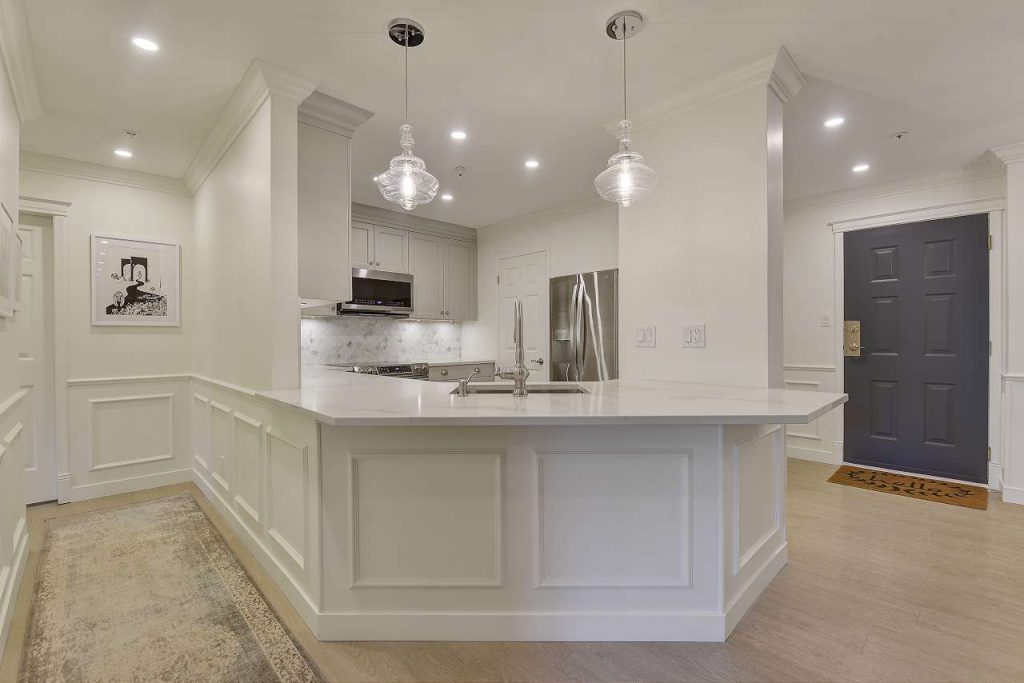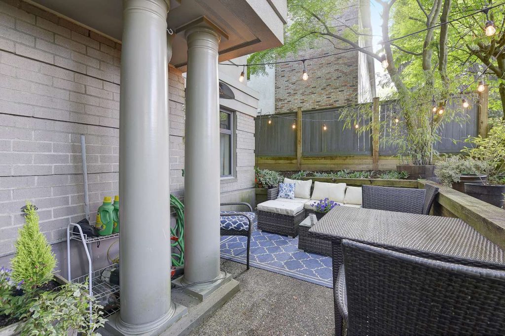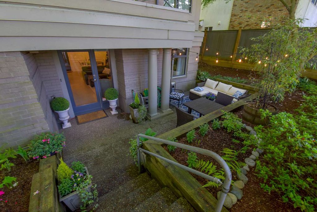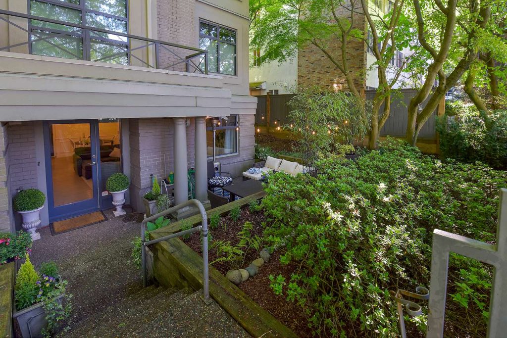 Beautifully Designed & Renovated ground level corner home that feels like a Townhome w/a huge walk out patio & private front entrance! Large open plan w/generous sized rooms, 3 bedrms /2 baths, durable wide plank flooring, marble tiled gas fireplace, wainscoting/mouldings, custom built-ins, a chefs kitchen w/induction cooktop, quartz counters, breakfast island, large primary w/walk thru closets & spa-like ensuite bath. Surrounded by lush landscaping that gives great privacy. Rainscreened building w/upgraded triple pane windows & superb strata! Perfect family or downsizer’s home. Unbeatable Cambie / VGH location, perfect walk score, transit, shopping & Cambie Village. Pets (1dog/1cat <40lbs), No Rentals. TWO side-by-side Parking & Storage