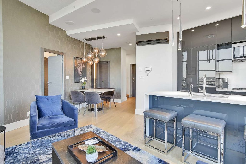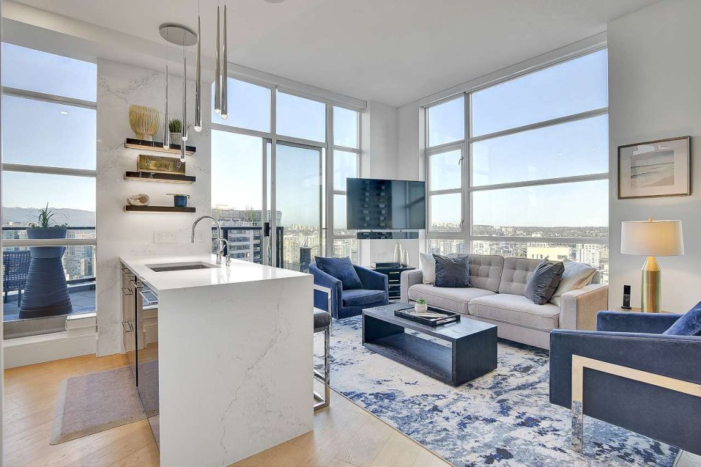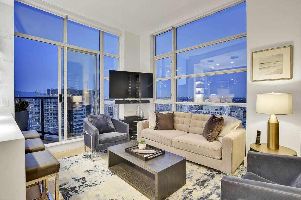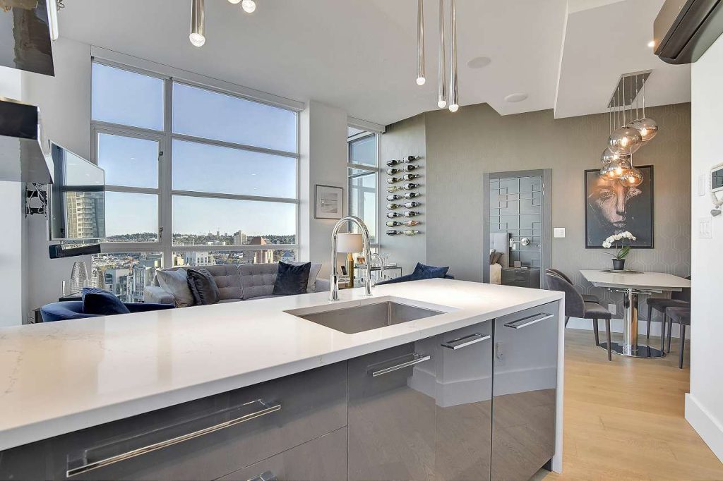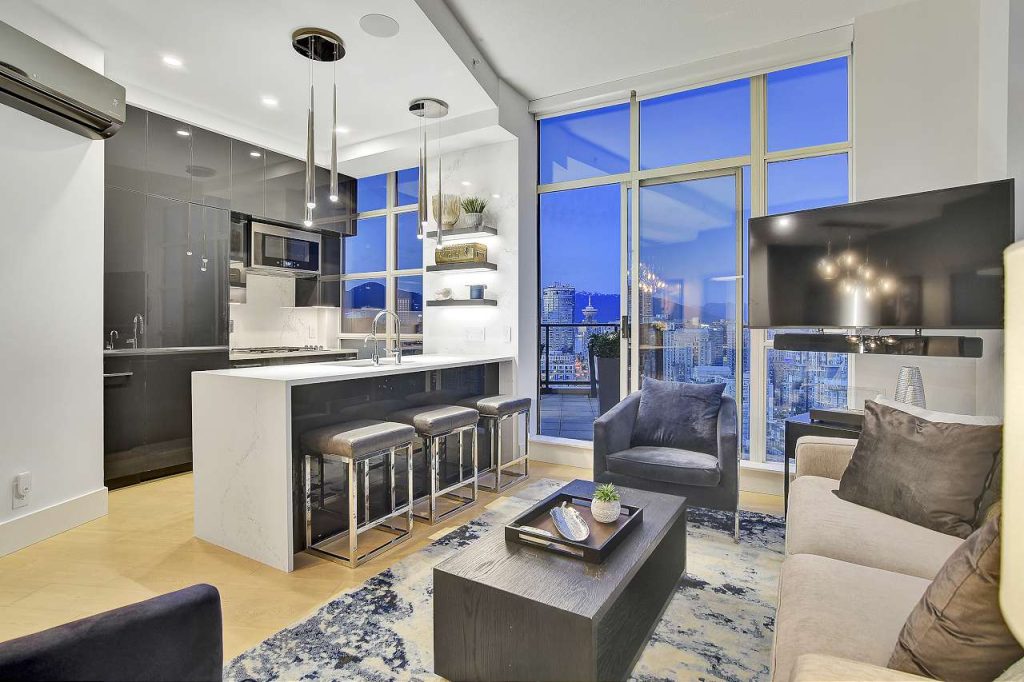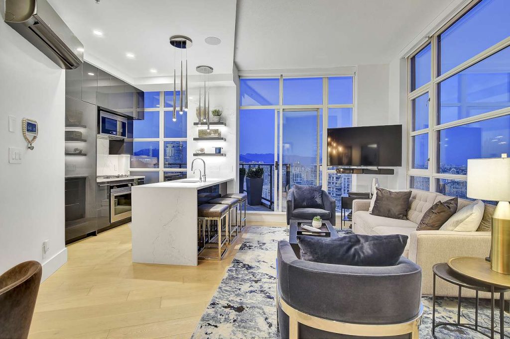 Elegant & Sophisticated Penthouse in the heart of Yaletown! Nearly 1900sf of indoor & outdoor living w/magnificent panoramic city, mountain & water views. Professionally designed w/over $250k spent on renos that incl a chef’s kitchen; Subzero, Miele, Bosch, high gloss cabinetry, ceasar stone waterfall island & backsplash, wide plank flooring, Air Conditioning, motorized blinds, Control 4 surround, European doors by Sapeli, smart lighting, built-ins, wine wall, list goes on. O/H ceilings w/floor-ceil windows, large Den w/a murphy bed/desk that is ideal for guests. Imagine entertaining or basking in the sun on your two large outdoor spaces, a terrace off the main level & a Rooftop patio. World class Amenities; Outdoor pool, Jacuzzi, Sauna, Gym, Guest suites, Concierge. Two Parking & Storage.