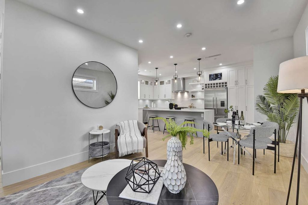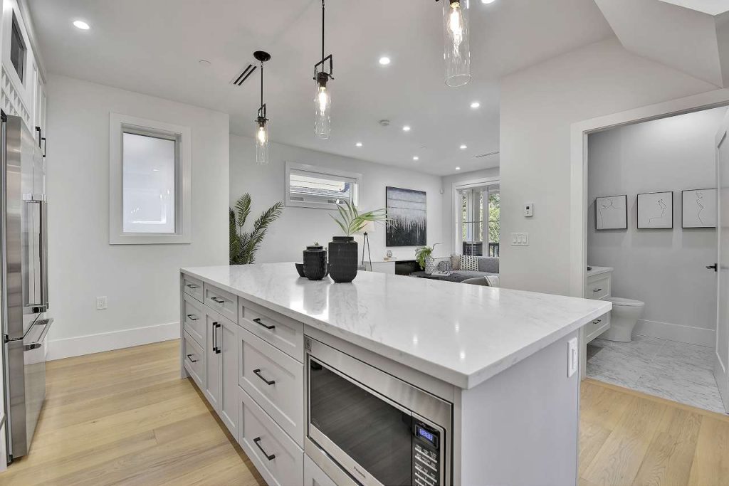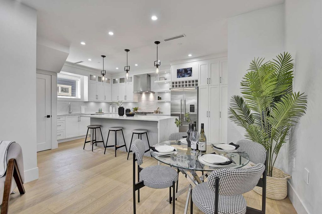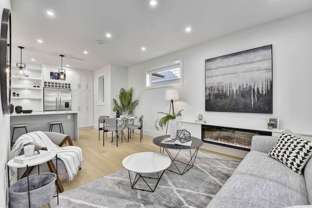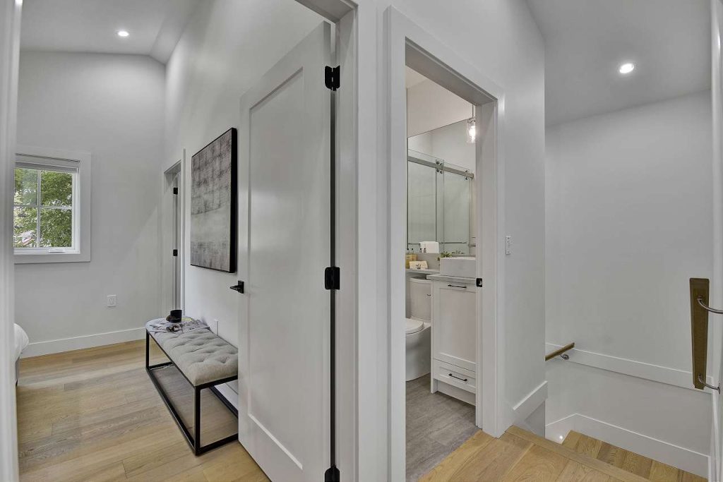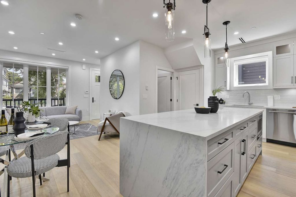 West of Nanaimo on most desirable Quiet East 6th Ave! Brand New Front Duplex with a cozy front porch! Exceptional quality & attention to detail, meticulously European built home. This family size home offers the best, generous open main level, 3 bedrooms, yard, garage, storage & BONUS legal 1 bedroom suite for extra income or in-law suite. A gourmet kitchen w/ XL kitchen island, custom cabinets, top of line Fisher Paykel, gas cooktop, rich stone counters, extensive built ins & millwork, Air Conditioning, HRV, video security, built-in vacuum, radiant floor heat, water on demand, the list goes on. One of Grandview’s nicest streets, surrounded by mature trees & beautiful Homes. Laura Secord & Van Tech schools (offering French immersion). 2-5-10 warranty