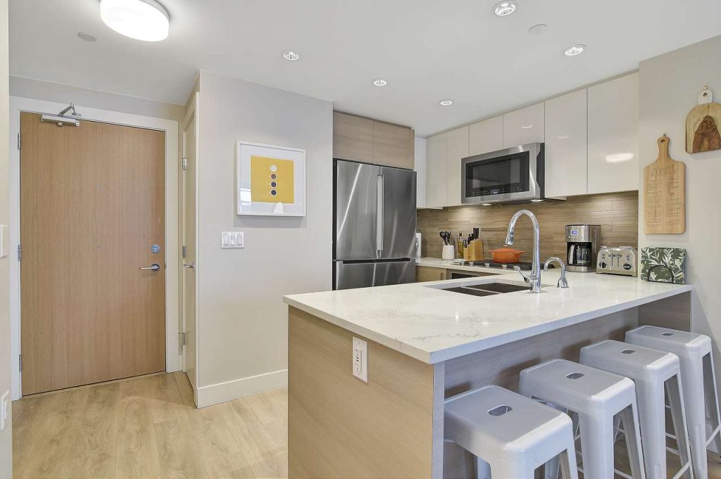 River District’s finest! Stunning 2 bedroom + Den in Quartet, a solid 3yr young sought-after Concrete building w/ 5-star Amenities! An open-concept plan for seamless living & entertaining. Featuring over-height ceilings, floor-ceil windows, AIR CONDITIONING, chef’s kitchen w/ SS appliances, 5-burner JennAir cooktop, elegant quartz counters, over-sized island, NEST high-efficiency heating & cooling, laminate flooring, large primary bedroom w/ WI closet & ensuite and a Large 170sf patio. CLUB CENTRAL: 14,000ft Amenities, fitness centre, pool/hot tub/steam, sauna/steam, kids’ room/ playground, squash/basketball, meeting room, Bocce/Party rooms, Banquet lounge w/ kitchen, yoga/dance studio & guest suites. Pets & Rentals friendly. Remaining of the 2-5-10 warranty. Parking & Storage incl.